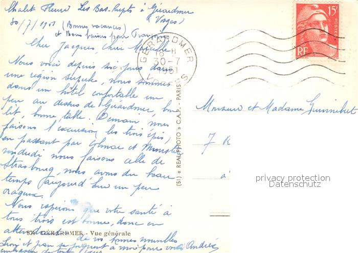 13593859 Gerardmer Vosges Vue generale postalisch gelaufen Erhaltung siehe scans [WerneD78] carte postale Wern Katcode 11170088388196