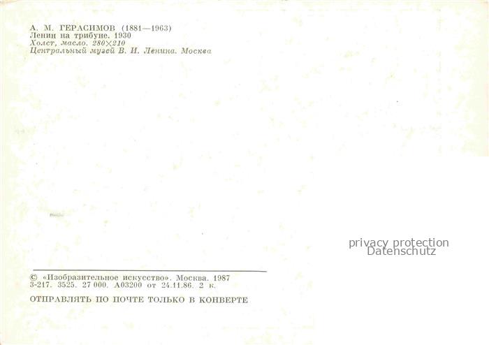 74042227 Gerassimow A M Kuenstlerkarte Lenin auf der Buehne postalisch nicht gelaufen Erhaltung siehe scans [IrynaD87] KatCode: 22240000003200