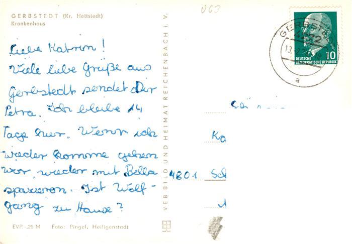 73879615 alte Postkarte Gerbstedt Krankenhaus postalisch gelaufen Erhaltung siehe scans [FriedD77] KatCode: 11110015087165
