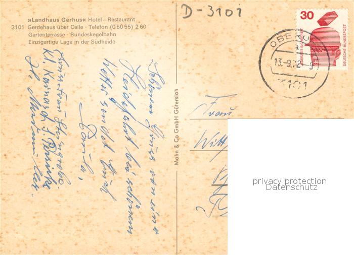73717295 alte Postkarte Gerdehaus Landhaus Gerhus Hotel Restaurant Gastraeume postalisch gelaufen Erhaltung siehe scans [WerneD78] KatCode: 11110003351010