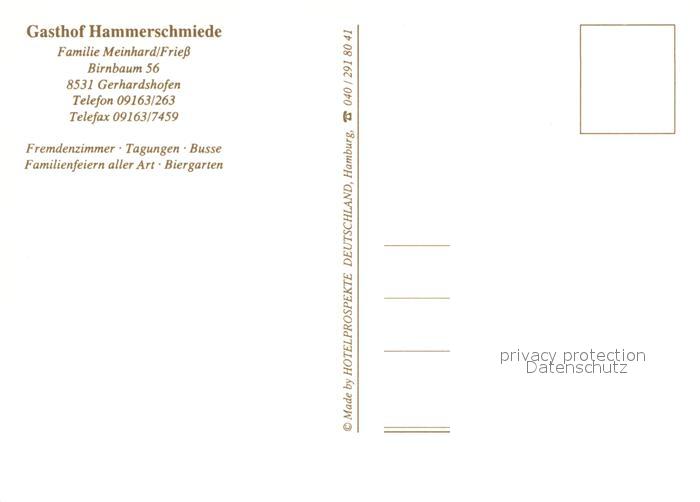 73660572 Gerhardshofen Gasthof Hammerschmiede Restaurant Fremdenzimmer postalisch nicht gelaufen Erhaltung siehe scans [FriedD77] KatCode: 11110009575125