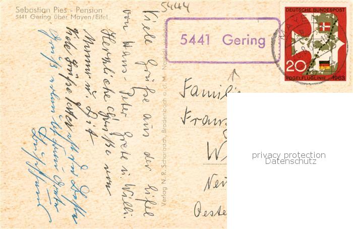 73830337 alte Postkarte Gering Mayen-Koblenz Pension Pies postalisch gelaufen Erhaltung siehe scans [FriedD77] KatCode: 11110007137029