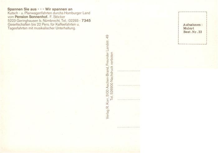 73905009 Geringhausen Pension Sonnenhof Gaststube Postkutsche Rinderherde postalisch nicht gelaufen Erhaltung siehe scans [WerneD78] KatCode: 11110005374032