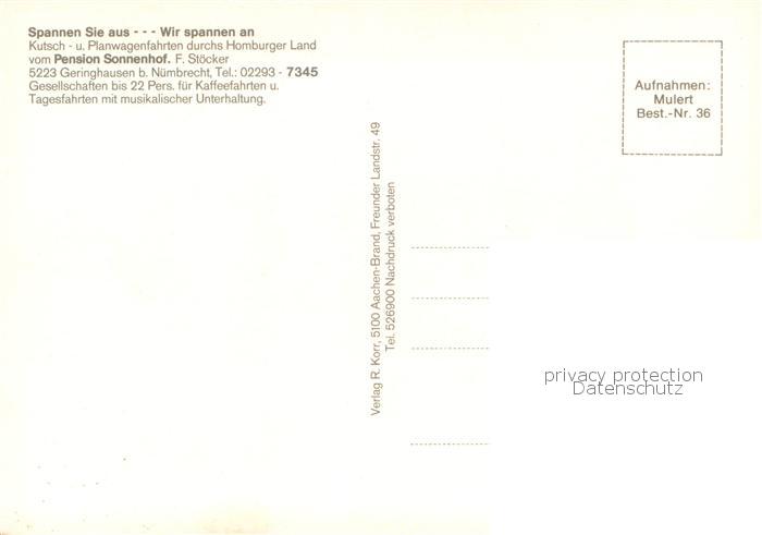 73760427 Geringhausen Pension Sonnenhof Pferdebus postalisch nicht gelaufen Erhaltung siehe scans [FriedD77] KatCode: 11110005374032