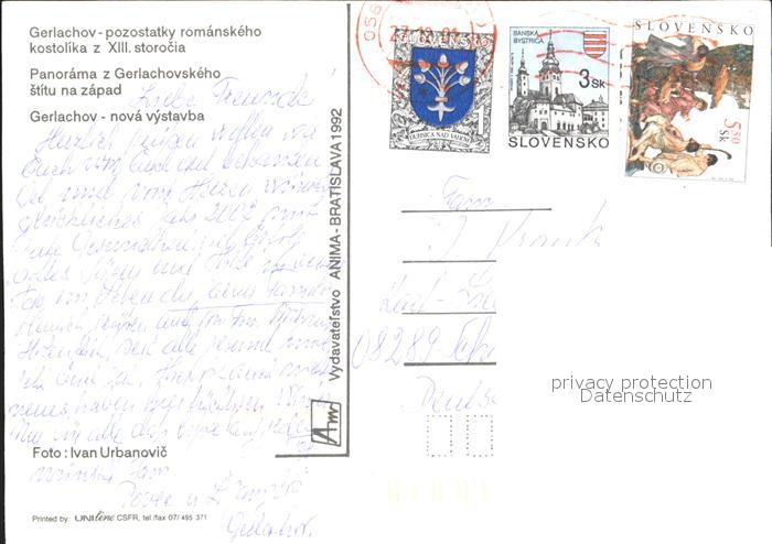 old postcard Gerlachov alter Steinturm Fliegeraufnahme postalisch gelaufen Erhaltung siehe scans