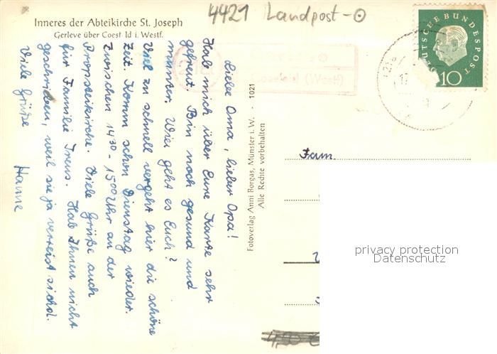 73695155 alte Postkarte Gerleve Abteikirche St Joseph Inneres postalisch gelaufen Erhaltung siehe scans [WerneD78] KatCode: 11110005558012