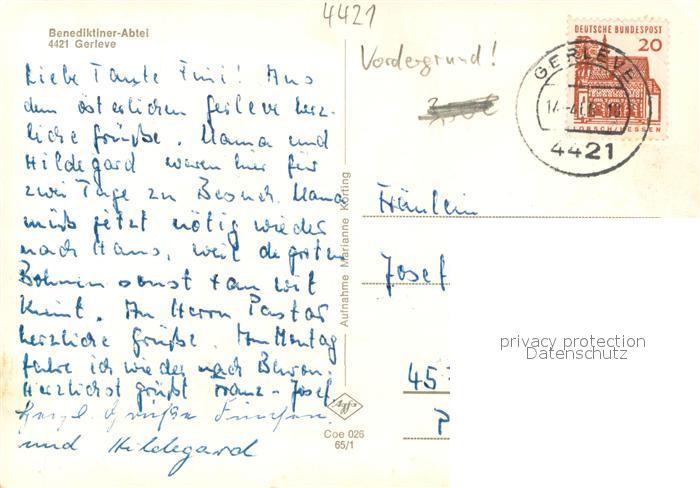 73695153 alte Postkarte Gerleve Benediktiner Abtei postalisch gelaufen Erhaltung siehe scans [WerneD78] KatCode: 11110005558012
