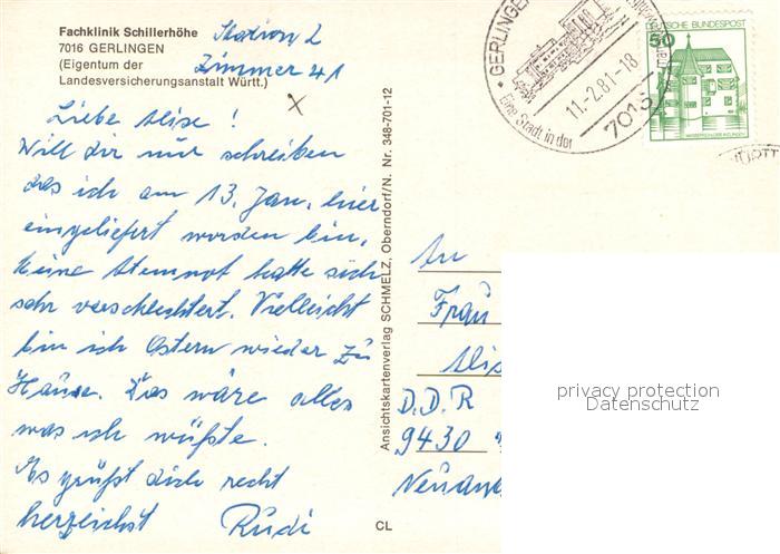 73644322 alte Postkarte Gerlingen Wuerttemberg Fachklinik Schillerhoehe Schwesternhaus Krankenstation Liegehalle Wintergarten postalisch gelaufen Erhaltung siehe scans [FriedD77] KatCode: 11110008118019