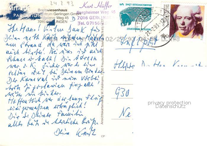 73072558 alte Postkarte Gerlingen Wuerttemberg Fliegeraufnahme Breitwiesenhaus Park Schwanenteich postalisch gelaufen Erhaltung siehe scans [WerneD78] KatCode: 11110008118019