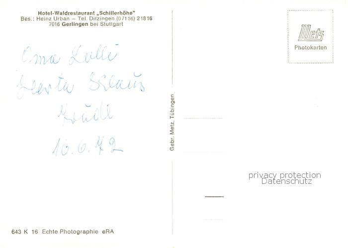 73830712 Gerlingen Wuerttemberg Hotel Waldrestaurant Schillerhoehe postalisch nicht gelaufen Erhaltung siehe scans [FriedD77] KatCode: 11110008118019