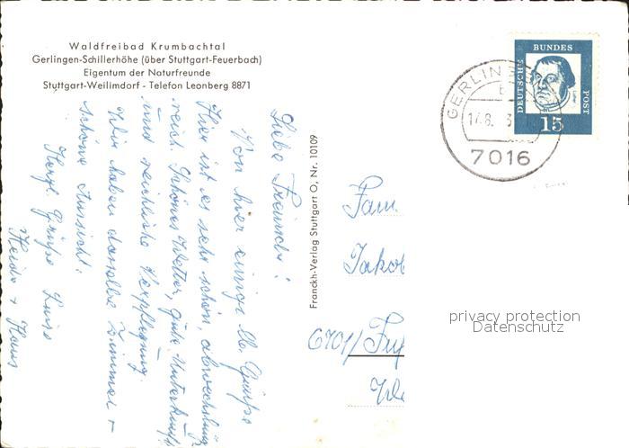 41790177 alte Postkarte Gerlingen Wuerttemberg Waldfreibad Krumbachtal Schillerhoehe postalisch gelaufen Erhaltung siehe scans KatCode: 11110008118019
