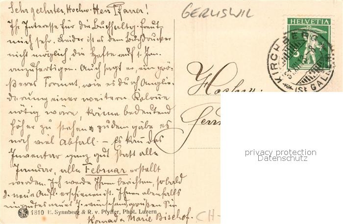 13566785 alte Postkarte Gerliswil Emmenbruecke Neue Kirche Zeichnung Architekt Gaudy 1912 postalisch gelaufen Erhaltung siehe scans [KathaD81] KatCode: 11470120380798
