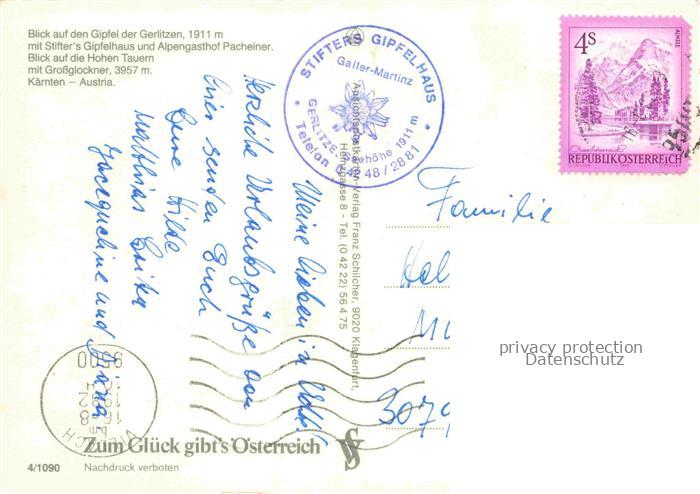 74110385 alte Postkarte Gerlitzen Arriach Kaernten AT Fliegeraufnahme mit Stifters Gipfelhaus und Alpengasthof Pacheiner postalisch gelaufen Erhaltung siehe scans [WerneD78] KatCode: 11390211020703