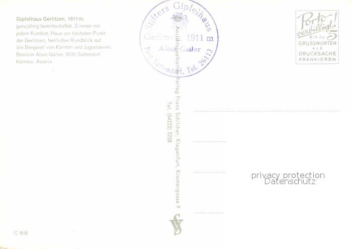 72618254 Gerlitzen Gipfelhaus Berghotel Restaurant postalisch nicht gelaufen Erhaltung siehe scans [FriedD77] KatCode: 11390211020703