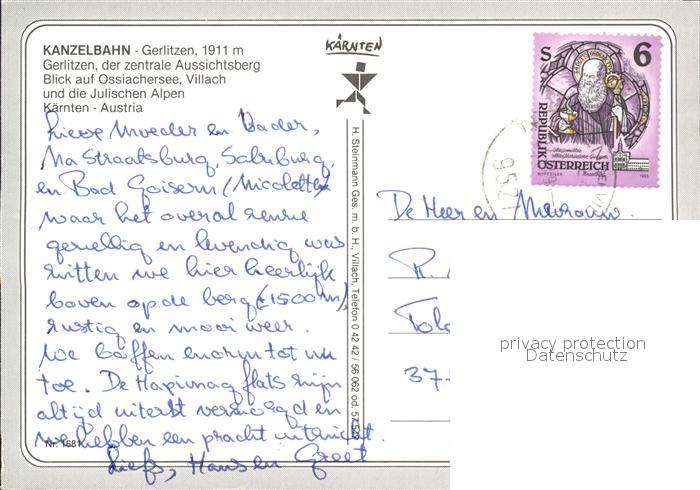 72205696 alte Postkarte Gerlitzen Kanzelbahn mit Ossiachersee und Villach postalisch gelaufen Erhaltung siehe scans KatCode: 11390211020703
