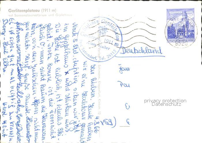 72610499 alte Postkarte Gerlitzen Plateau mit Sonnenobservatorium und Gipfelhaus postalisch gelaufen Erhaltung siehe scans [AndreD76] KatCode: 11390211020703