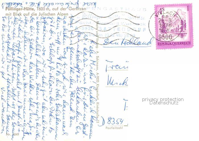 72619621 alte Postkarte Gerlitzen Poellinger Huette mit Blick auf Julische Alpen Fernsicht postalisch gelaufen Erhaltung siehe scans [FriedD77] KatCode: 11390211020703