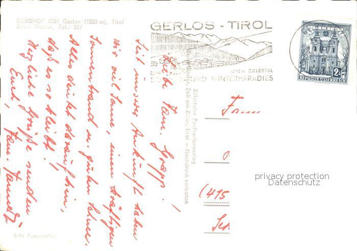 12010954 alte Postkarte Gerlos Berghof Ski postalisch gelaufen Erhaltung siehe scans KatCode: 11390335070912