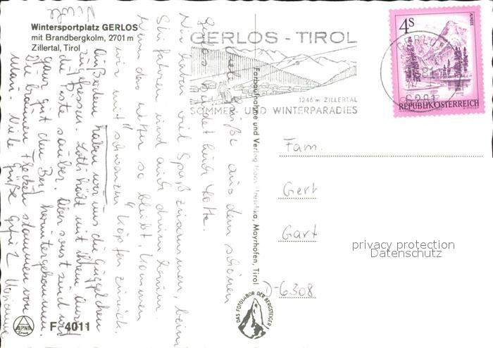 72395651 alte Postkarte Gerlos Brandbergkolm Zillertal postalisch gelaufen Erhaltung siehe scans KatCode: 11390335070912