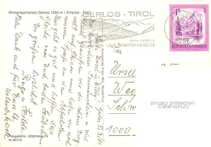 73171657 alte Postkarte Gerlos Fliegeraufnahme postalisch gelaufen Erhaltung siehe scans [NatalD47] KatCode: 11390335070912