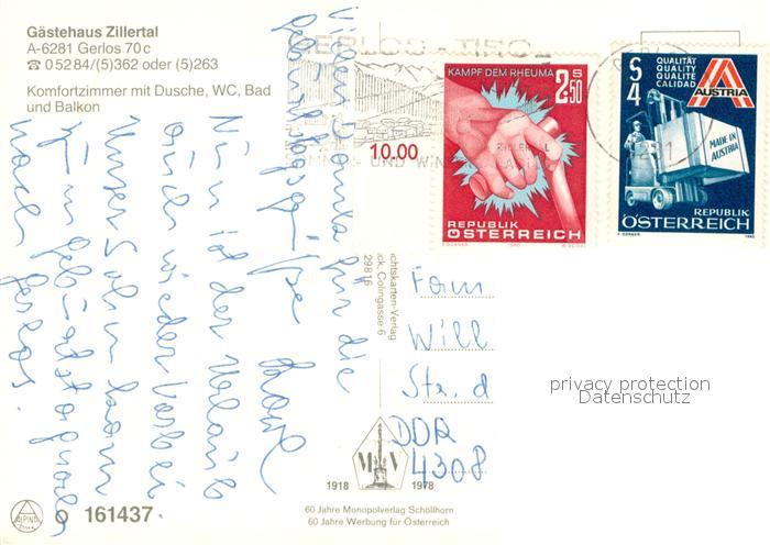 73712936 alte Postkarte Gerlos Gaestehaus Zillertal Ortspartie Seeblick postalisch gelaufen Erhaltung siehe scans [WerneD78] KatCode: 11390335070912
