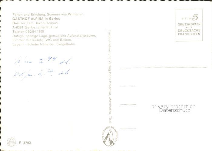 72298890 Gerlos Gasthof Alpina postalisch nicht gelaufen Erhaltung siehe scans KatCode: 11390335070912