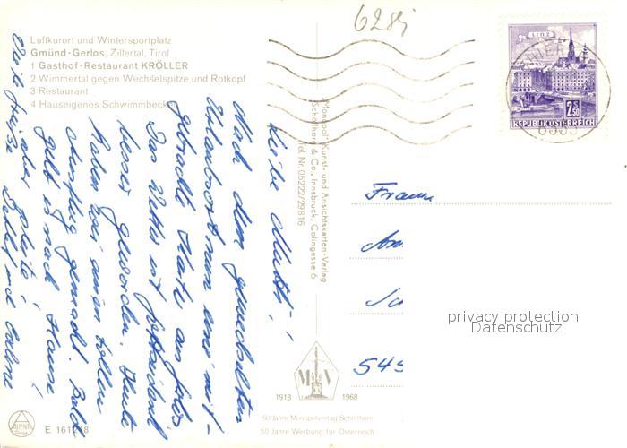 12983338 alte Postkarte Gerlos Gasthof Kroeller Gaststbe Schwimmbad postalisch gelaufen Erhaltung siehe scans [AndreD76] KatCode: 11390335070912