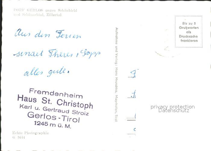 12008794 alte Postkarte Gerlos gegen Schoenbichl und Schoenachtal Zillertal postalisch gelaufen Erhaltung siehe scans KatCode: 11390335070912