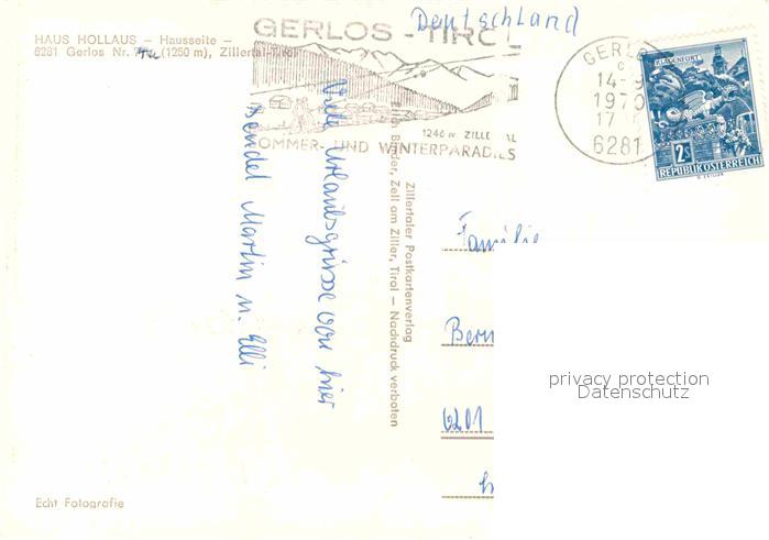 12731873 alte Postkarte Gerlos Haus Hollaus postalisch gelaufen Erhaltung siehe scans [WerneD78] KatCode: 11390335070912