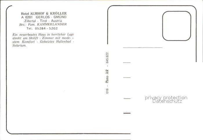 72517573 Gerlos Hotel Almhof postalisch nicht gelaufen Erhaltung siehe scans KatCode: 11390335070912