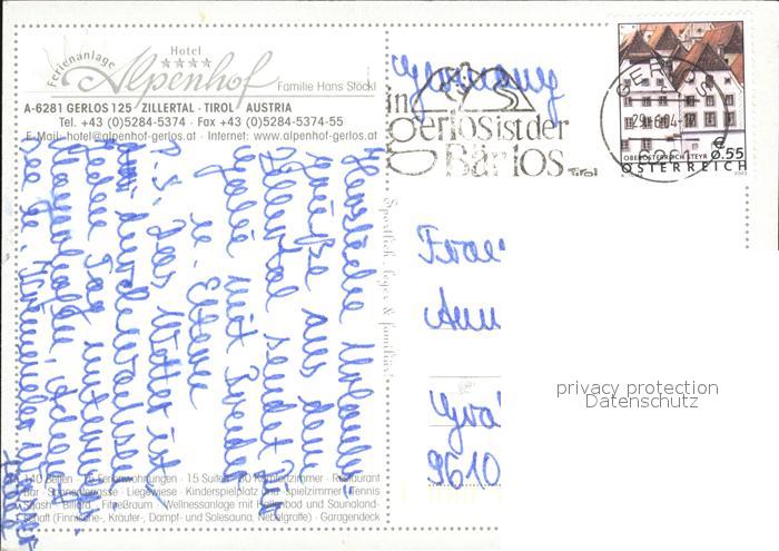 72445443 alte Postkarte Gerlos Hotel Alpenhof postalisch gelaufen Erhaltung siehe scans KatCode: 11390335070912
