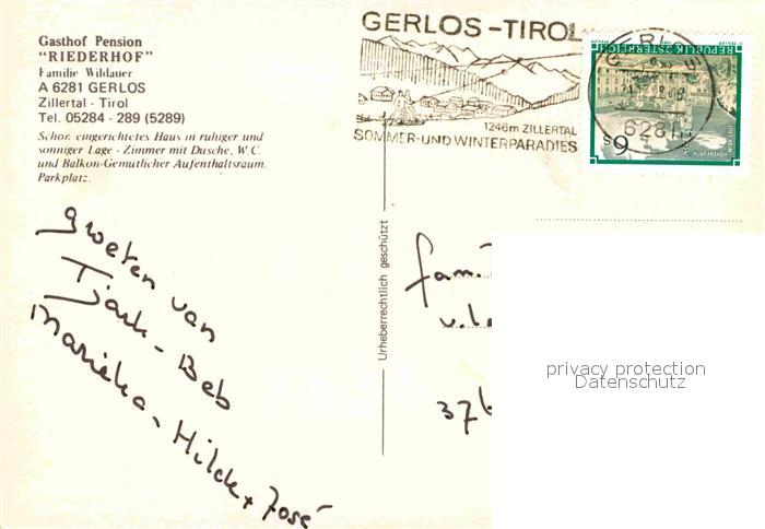12834149 alte Postkarte Gerlos Hotel Pension Riederhof postalisch gelaufen Erhaltung siehe scans [KathaD81] KatCode: 11390335070912
