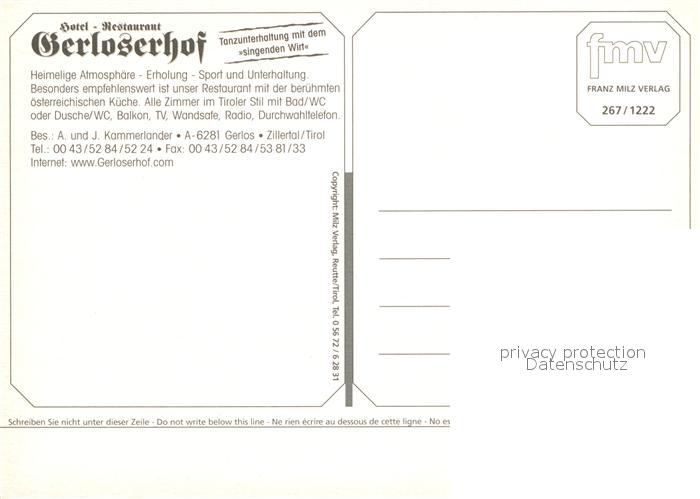 12937069 Gerlos Hotel Restaurant Gerloserhof postalisch nicht gelaufen Erhaltung siehe scans [AndreD76] KatCode: 11390335070912