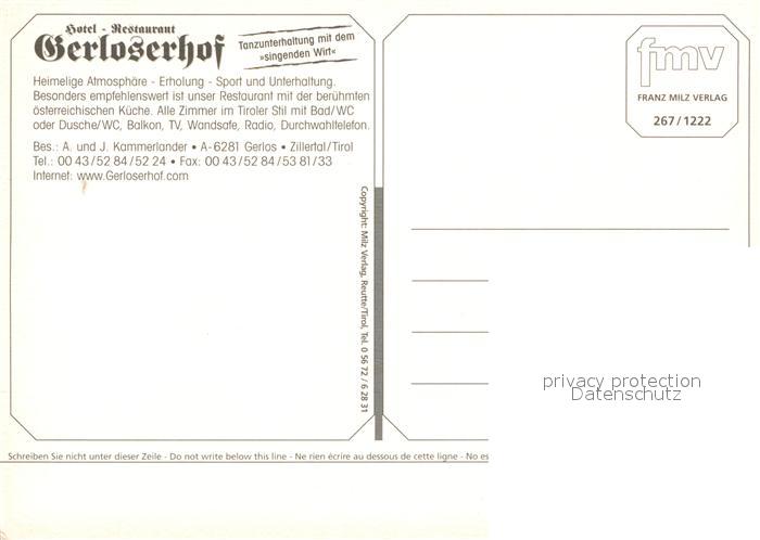 73198245 Gerlos Hotel Restaurant Gerloserhof Zum singenden Wirt postalisch nicht gelaufen Erhaltung siehe scans [KathaD81] KatCode: 11390335070912