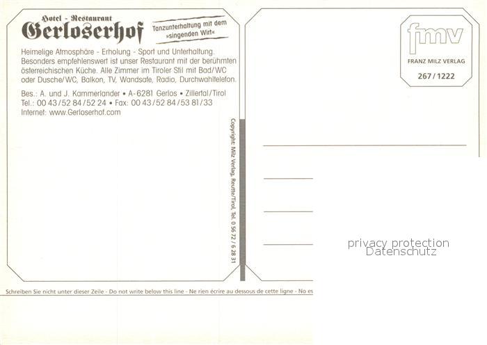73161254 Gerlos Hotel Restaurant Gerloserhof postalisch nicht gelaufen Erhaltung siehe scans [KathaD81] KatCode: 11390335070912