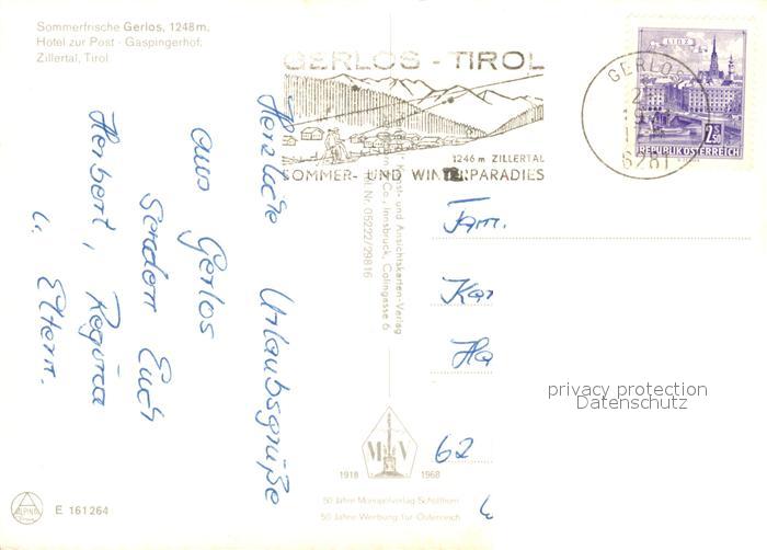 73588088 alte Postkarte Gerlos Hotel zur Post postalisch gelaufen Erhaltung siehe scans [PaolaD17] KatCode: 11390335070912