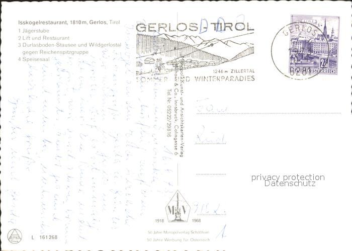 72261883 alte Postkarte Gerlos Isskogel Restaurant Jaegerstube Lift Durlasboden Stausee Alpenpanorama postalisch gelaufen Erhaltung siehe scans KatCode: 11390335070912