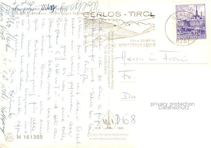73224016 alte Postkarte Gerlos Isskogel Sesselbahn gegen Schoenachtal Alpenpanorama postalisch gelaufen Erhaltung siehe scans [FriedD77] KatCode: 11390335070912