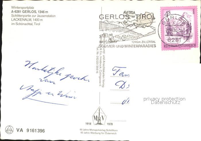 72579280 alte Postkarte Gerlos Jausenstation Lackenalm Pferdeschlitten postalisch gelaufen Erhaltung siehe scans [LiesaD40] KatCode: 11390335070912