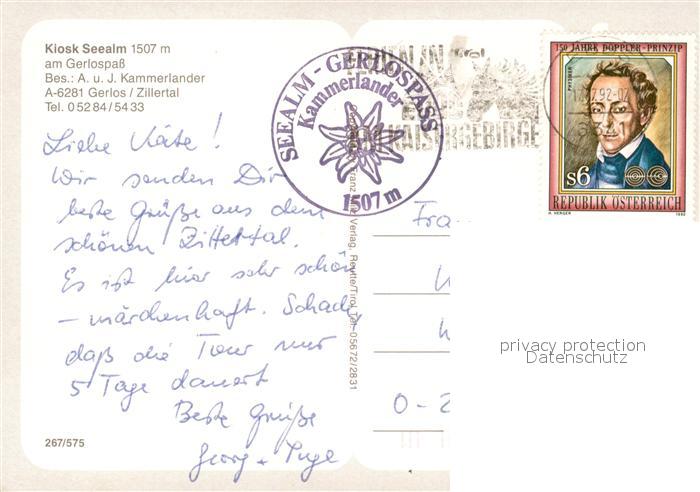 73340276 alte Postkarte Gerlos Kiosk Seealm Holzbrunnen Pferdekoppel See Alpenpanorama postalisch gelaufen Erhaltung siehe scans [FriedD77] KatCode: 11390335070912