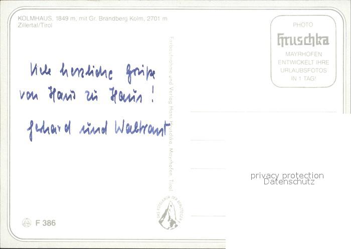 72407006 Gerlos Kolmhaus mit Brandberg Kolm Zillertal postalisch nicht gelaufen Erhaltung siehe scans KatCode: 11390335070912
