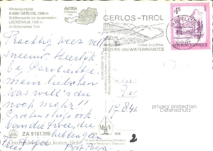 72237262 alte Postkarte Gerlos Lackenalm mit Pferdeschlitten postalisch gelaufen Erhaltung siehe scans KatCode: 11390335070912