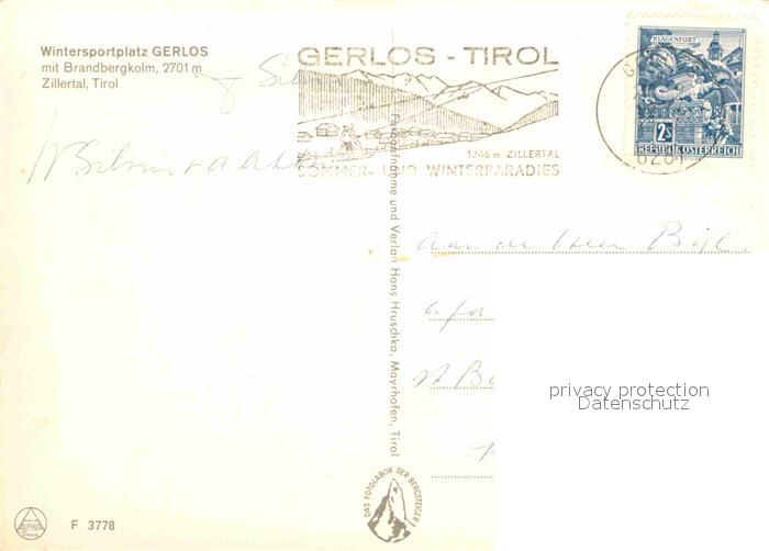 72867922 alte Postkarte Gerlos mit Brandbergkolm postalisch gelaufen Erhaltung siehe scans [WerneD78] KatCode: 11390335070912