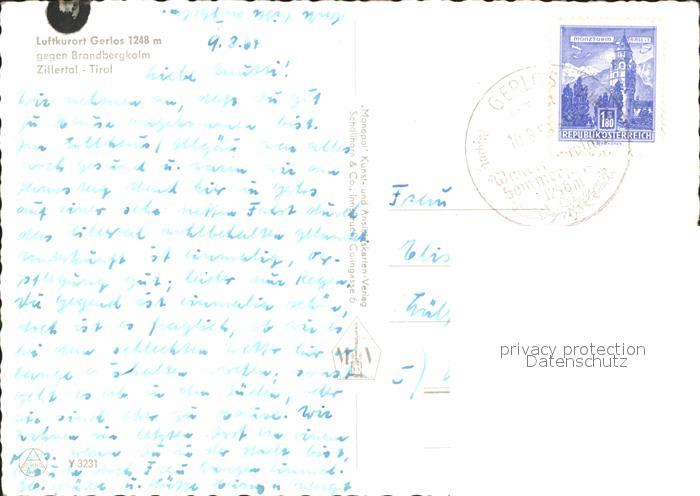 71820578 alte Postkarte Gerlos Panorama Luftkurort Zillertal gegen Brandbergkolm postalisch gelaufen Erhaltung siehe scans KatCode: 11390335070912