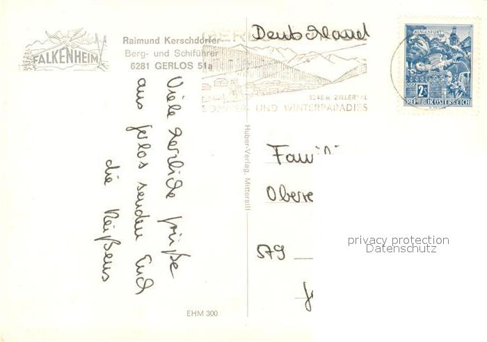 73086042 alte Postkarte Gerlos Pension Gaestehaus Falkenheim Wintersportplatz Alpen postalisch gelaufen Erhaltung siehe scans [FriedD77] KatCode: 11390335070912