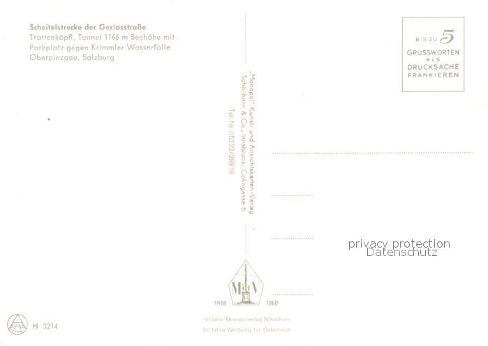 73021193 Gerlos Scheitelstrecke der Gerlosstrasse Trattenkoepfl Tunnel postalisch nicht gelaufen Erhaltung siehe scans [PaolaD17] KatCode: 11390335070912