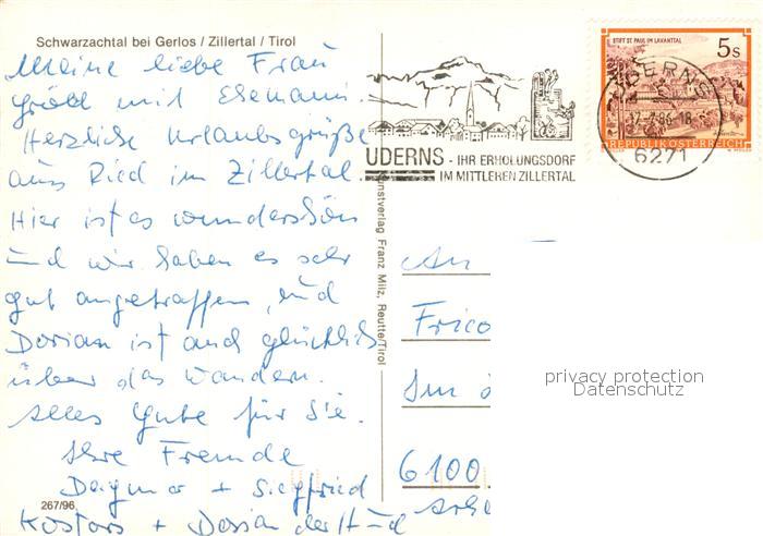 73513343 alte Postkarte Gerlos Schwarzachtal postalisch gelaufen Erhaltung siehe scans [KathaD81] KatCode: 11390335070912