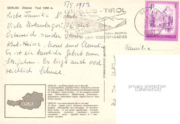 73125255 alte Postkarte Gerlos Sesselbahn postalisch gelaufen Erhaltung siehe scans [NatalD47] KatCode: 11390335070912