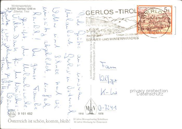 72377237 alte Postkarte Gerlos Winter Ortsansicht Sportplatz postalisch gelaufen Erhaltung siehe scans KatCode: 11390335070912