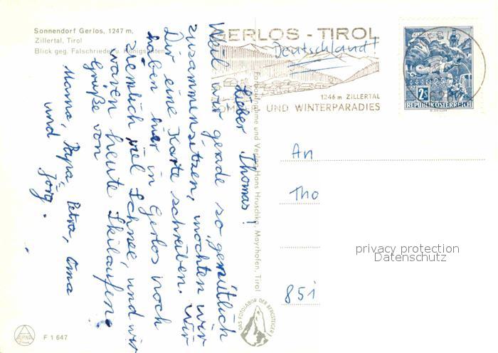 72840009 alte Postkarte Gerlos Zillertal Falschriedel postalisch gelaufen Erhaltung siehe scans [LiesaD40] KatCode: 11390335070912